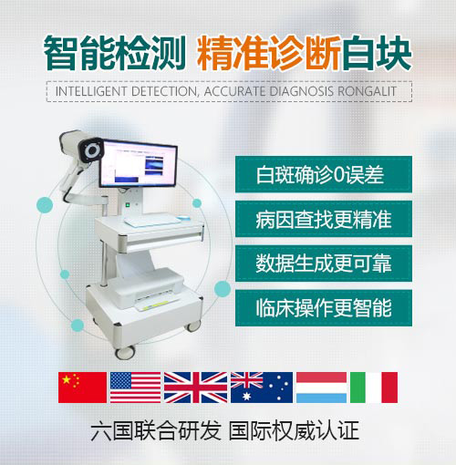 白癜风确诊一般采用伍德灯检查,可检查出黑色素脱失程度和白斑种类。为了提高精度,我院在华中地区率先引进白癜风智能AI成像检测系统是一套基于白癜风(白斑)专业检测,集白癜风疾病确诊、病因查找、病情分析、诊断治疗于一体的白癜风智能化分析管理系统。